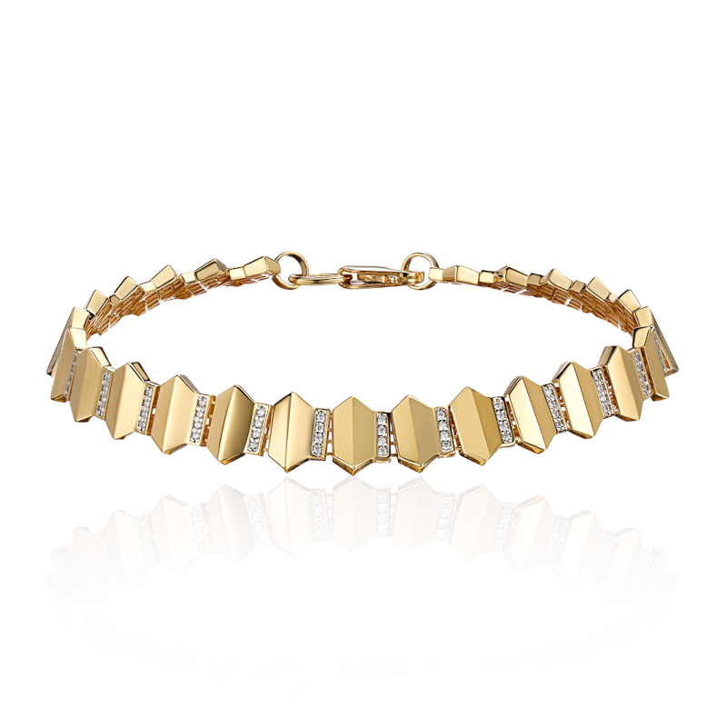 Изящный браслет из желтого золота 585 пробы, украшенный сверкающими фианитами, станет прекрасным дополнением вашего украшения и подчеркнет индивидуальный стиль. Каждое изделие изготовлено с вниманием к деталям и высоким качеством, что гарантирует его долговечность и привлекательный внешний вид. Благодаря классической элегантной стилистике, этот браслет идеально подойдет как для повседневного ношения, так и для особых случаев.