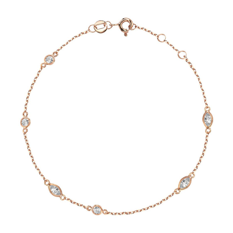Браслет из красного золота 375 пробы сочетает элегантность и изящество, создавая привлекательный акцент любой аутфит. Его насыщенный теплый оттенок благородно выделяется на коже, подчеркивая индивидуальность обладательницы. Украшение украшено искусственными фианитами, которые придают изделию яркое сияние и легкую игривость, делая его подходящим как для повседневного носки, так и для особых случаев.