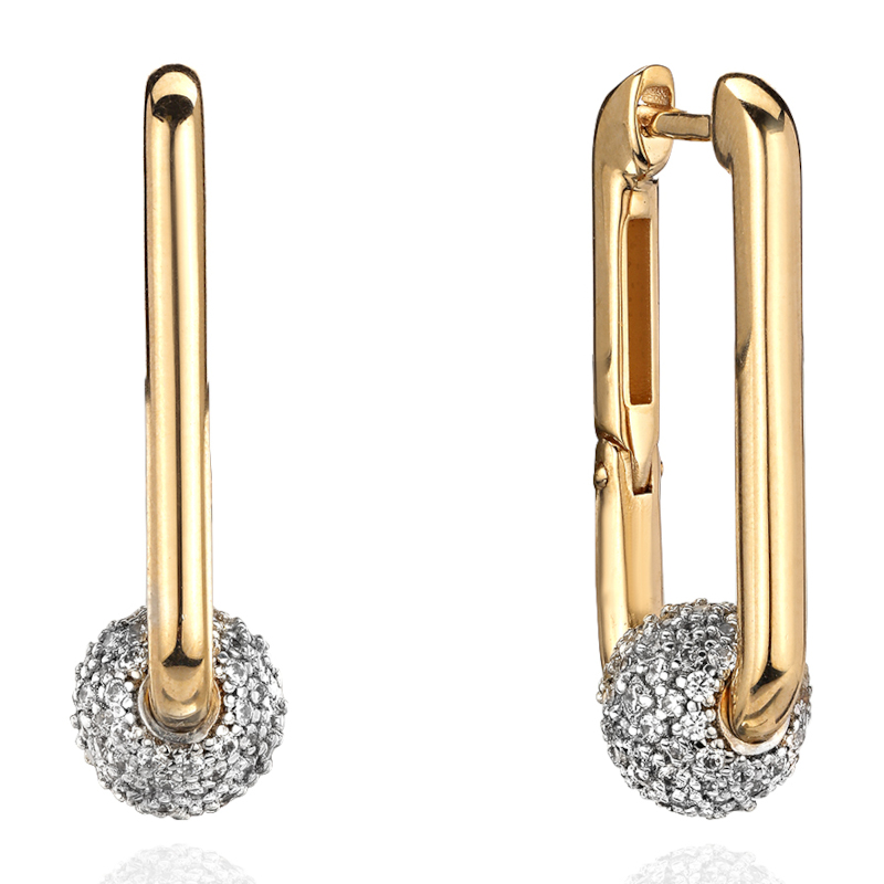 Серьги из желтого золота 585 пробы с фианитами 01С1314907Р
