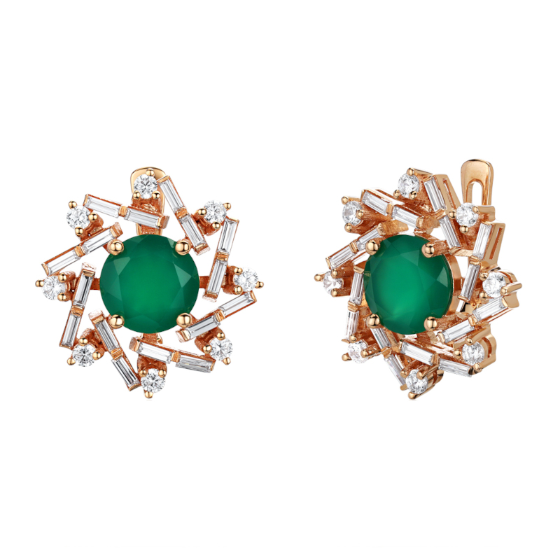 Серьги из красного золота 585 пробы с агатом и фианитами 01С4115419-1