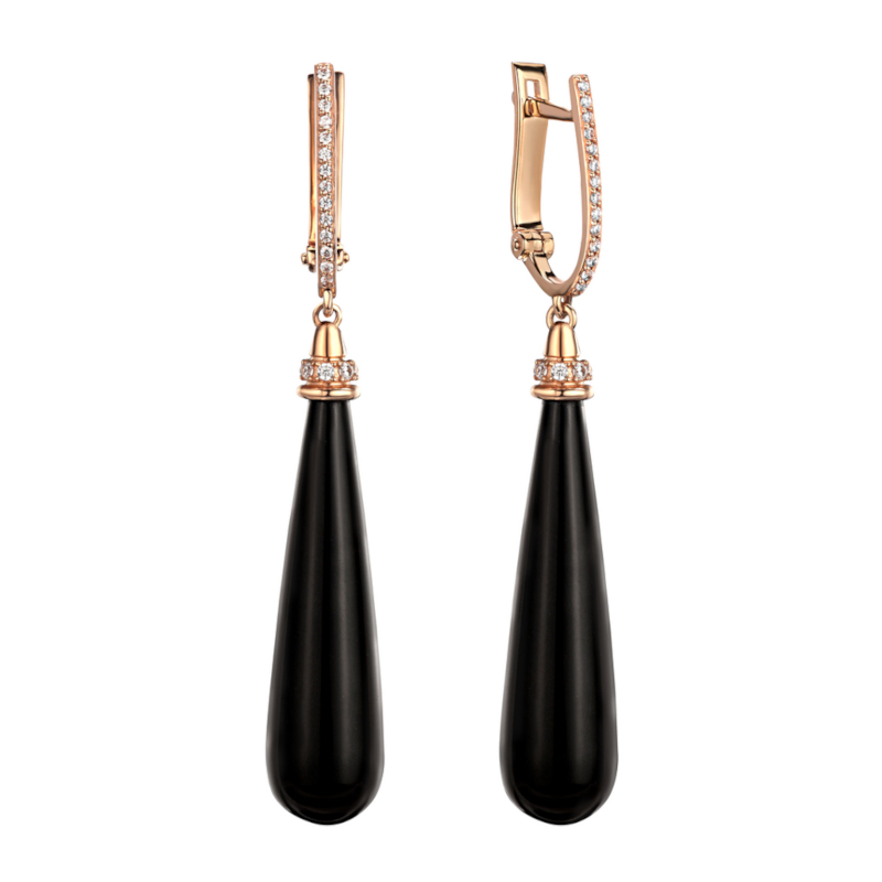 Серьги из красного золота 585 пробы с агатом и фианитами 01С4115584Р-1