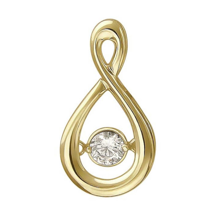 Подвеска из желтого золота 585 пробы с танцующим фианитом из коллекции Impulse. Уникальная закрепка в украшениях Impulse, пожалуй, прорыв во множестве традиционных вариантов закрепки камней. Точно выверенный баланс создан с таким расчетом, чтобы вставка приходила в движение, не переворачиваясь. Качания камня визуально ассоциируются с танцем. Лучи света каждый раз отражаются от разных граней вставки, превращаясь в радужные вспышки света. Это волшебство отражает всю красоту женщины.