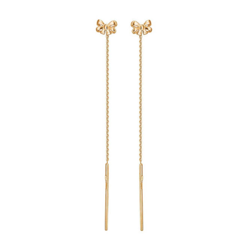 Невесомые серьги цепочки из красного золота 585 пробы без вставок привлекут внимание к изяществу Вашей шеи и будут отлично смотреться с любым нарядом. Не стоит волноваться за отсутствие замка. Серьги находятся в ухе и не выпадают за счет баланса сережек. В украшении много воздуха и движения. Ювелирный дом "Эстет" занимается производством ювелирных изделий с 1991 года и входит в пятерку лидеров отрасли в России по объемам производства и реализации. В ассортименте компании более 15 тысяч наименований украшений, среди которых каждый сможет найти подходящий вариант для себя или в подарок близким.