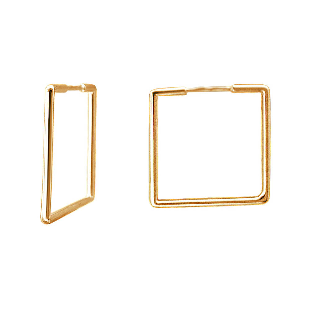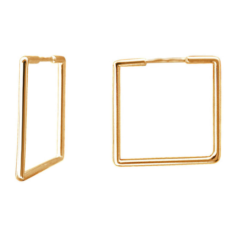 Серьги конго из красного золота 585 пробы без вставок из коллекции "Геометрия". Такие серьги изготавливаются полыми, что делает их очень легкими при внушительном размере. Классическую круглую форму конго заменили углы геометрии.