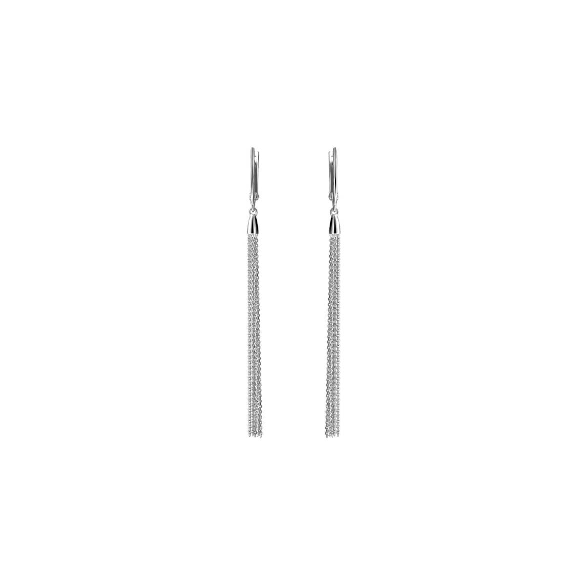 Длинные серьги-кисточки из белого золота 585 пробы — воплощение богемного шика. Пышные кисточки составлены из тонких цепочек, родированных для максимального блеска. Каждое движение сопровождается блеском белого золота и игрой света на многочисленных звеньях. Дизайн отличает изящная легкость. Английский замок фиксирует серьги с идеальным балансом.