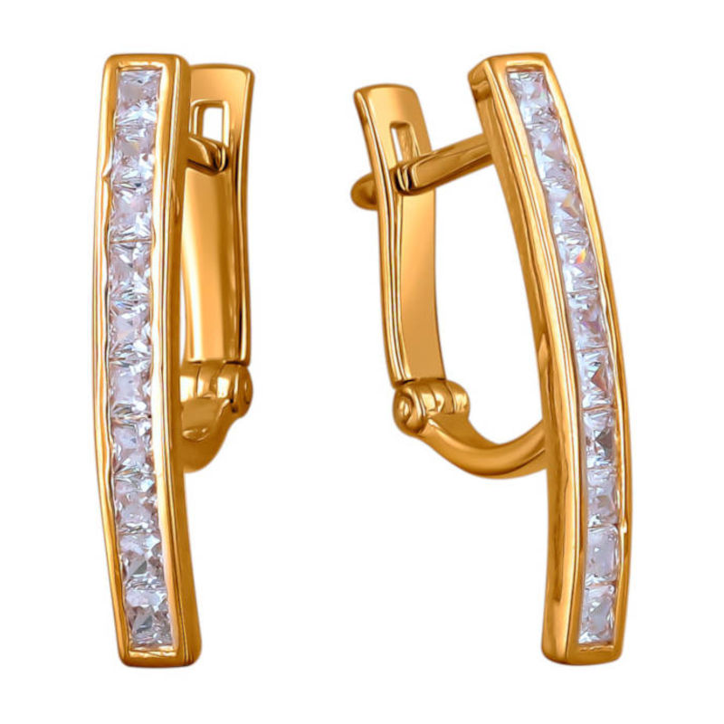 Серьги из красного золота 585 пробы с дорожками из фианитов из коллекции "Стиль города". Дизайнеры вдохновились городскими дорогами, развязками, ночными фонарями, мостами и строительными конструкциями. Поэтому в коллекции много линий, полос, камней. Городской стиль casual одинаково нравится людям разного возраста и достатка. Он позволяет сформировать полноценный образ людям с любой фигурой и ростом. Особенностью городского стиля в украшениях будет то, что их можно носить каждый день, независимо от дресс-кода или планируемого мероприятия. Конструкция замка скроет дырку от прокола.