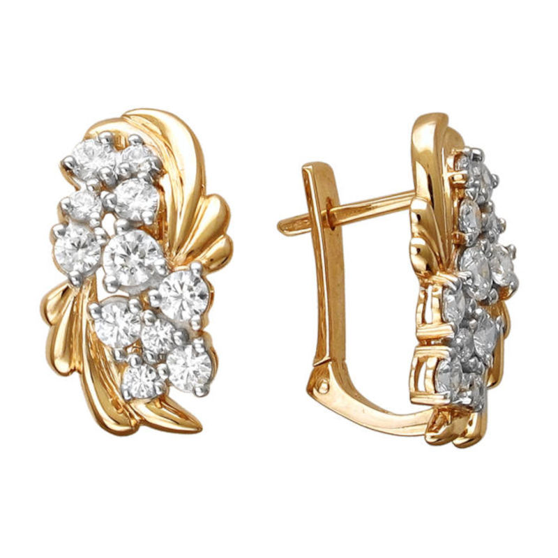 Серьги из красного золота 585 пробы с фианитами. Надежный английский замком привычен и любим многими женщинами. Это базовое украшение с элегантным дизайном, очень комфортное в повседневной носке. Фианит всего лишь был должен заменить алмаз для лабораторий. А получилось, что стал незаменимым атрибутом ювелирных украшений. Самыми популярными являются, конечно же, прозрачные фианиты. Они гармонируют совершенно с любым металлом, с любой формой изделия. Конструкция замка скроет дырку от прокола.