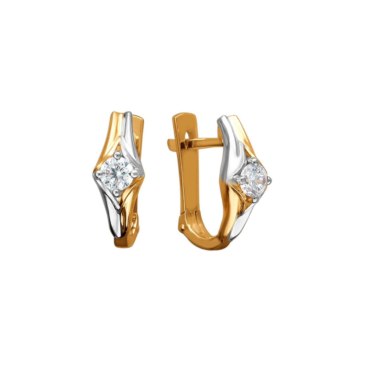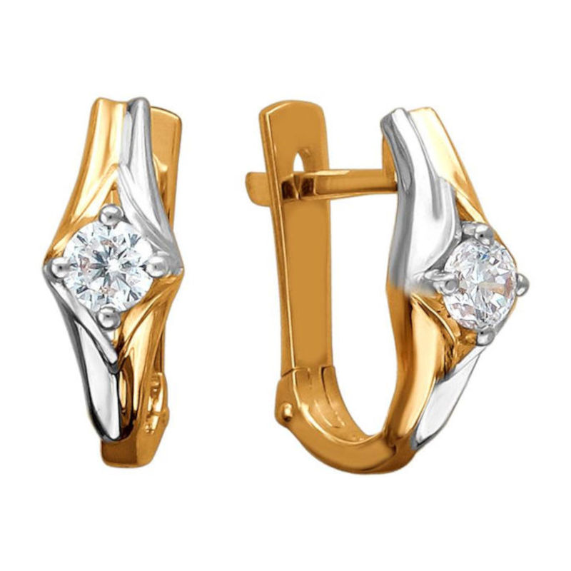 Серьги из красного золота 585 пробы с фианитами. Надежный английский замком привычен и любим многими женщинами. Это базовое украшение с элегантным дизайном, очень комфортное в повседневной носке. Фианит всего лишь был должен заменить алмаз для лабораторий. А получилось, что стал незаменимым атрибутом ювелирных украшений. Самыми популярными являются, конечно же, прозрачные фианиты. Они гармонируют совершенно с любым металлом, с любой формой изделия. Конструкция замка скроет дырку от прокола.