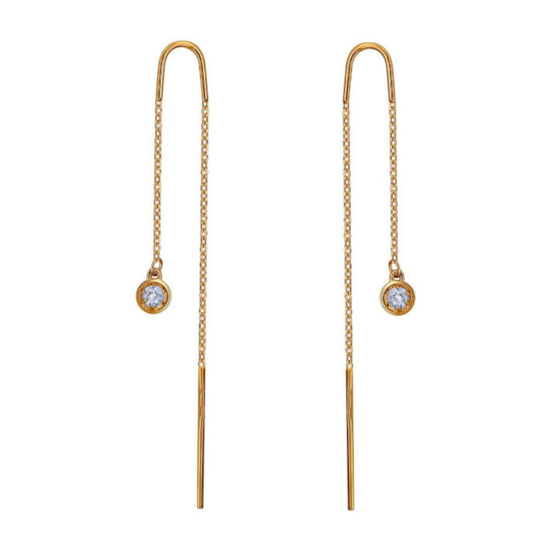 Невесомые серьги-цепочки из красного золота 585 пробы с фианитами — базовая модель из коллекции «Геометрия». Застёжка-протяжка свободно фиксируется в ухе без замка. Каскад из двух золотых цепочек подчёркивает красоту скул и шеи. В дизайне украшения много воздуха, лёгкости и обаяния. Лаконичная форма и небольшой размер делают серьги-цепочки из красного золота идеальным украшением на каждый день.