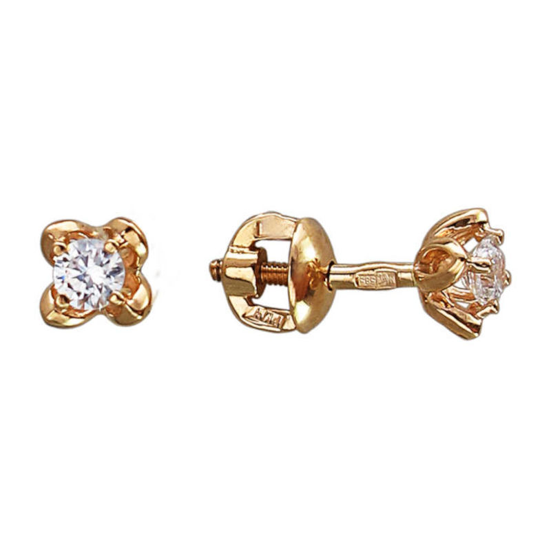 Серьги из красного золота 585 пробы с фианитами 01С115865