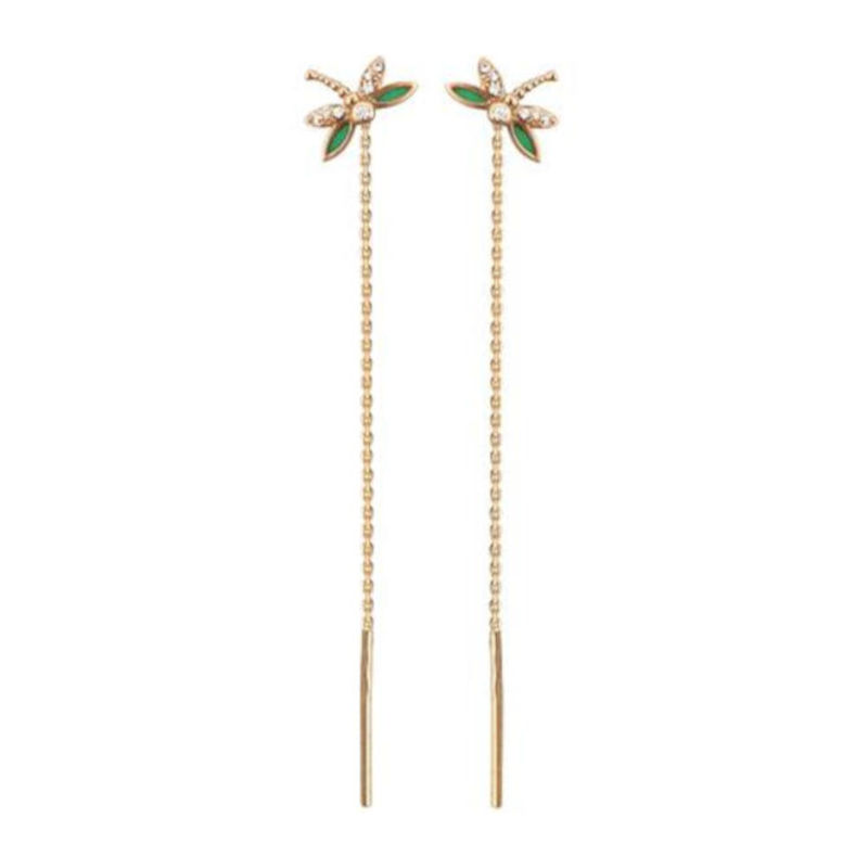 Невесомые серьги цепочки из красного золота 585 пробы с фианитами и эмалью привлекут внимание к изяществу Вашей шеи и будут отлично смотреться с любым нарядом. Не стоит волноваться за отсутствие замка. Серьги находятся в ухе и не выпадают за счет баланса сережек. В украшении много воздуха и движения.
