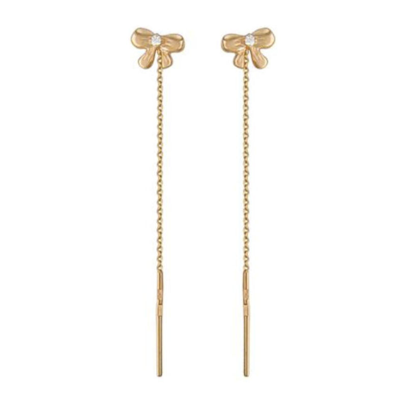 Невесомые серьги цепочки из красного золота 585 пробы с фианитами привлекут внимание к изяществу Вашей шеи и будут отлично смотреться с любым нарядом. Не стоит волноваться за отсутствие замка. Серьги находятся в ухе и не выпадают за счет баланса сережек. В украшении много воздуха и движения.