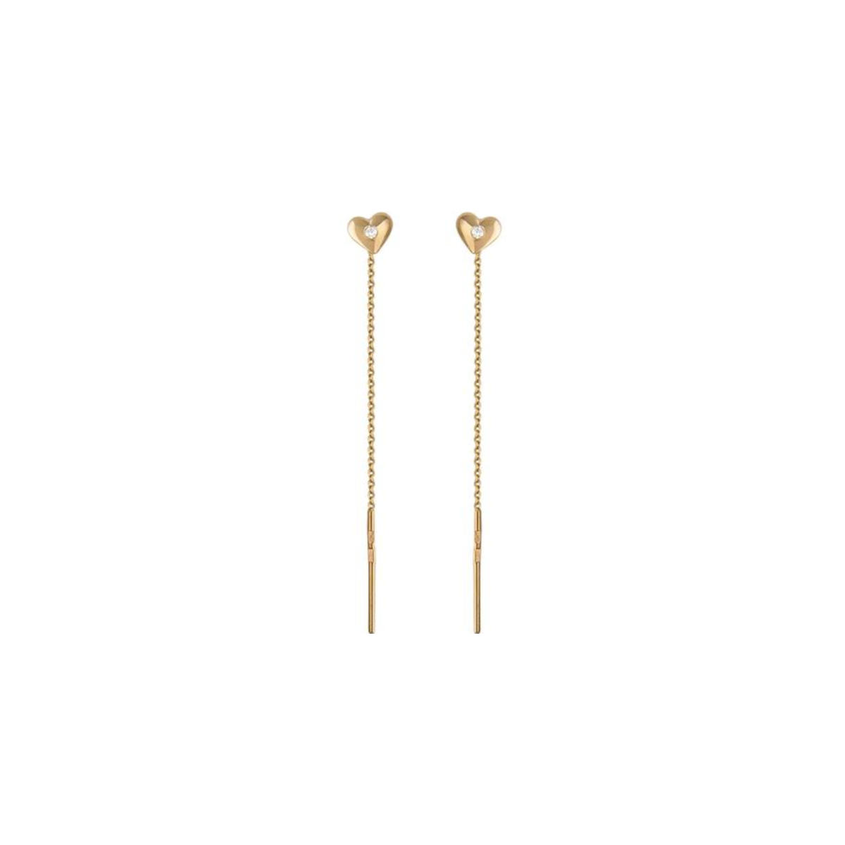 Тоненькие и невесомые серьги цепочки из красного золота 585 пробы с фианитами привлекут внимание к изяществу Вашей шеи и будут отлично смотреться с любым нарядом. Удобная конструкция без замков. Серьги находятся в ухе и не выпадают за счет баланса сережек. Массы металла с обратной стороны серьги достаточно, чтобы удерживать лицевую композицию. Серьги легко надевать, подходят для любой мочки уха. В украшении много воздуха и движения. Базовая коллекция Lamour создана специально для всех возрастов. Никто не останется равнодушным от такого знака внимания.
