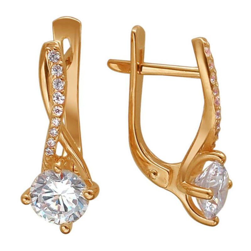 Серьги из красного золота 585 пробы с фианитами 01С118637