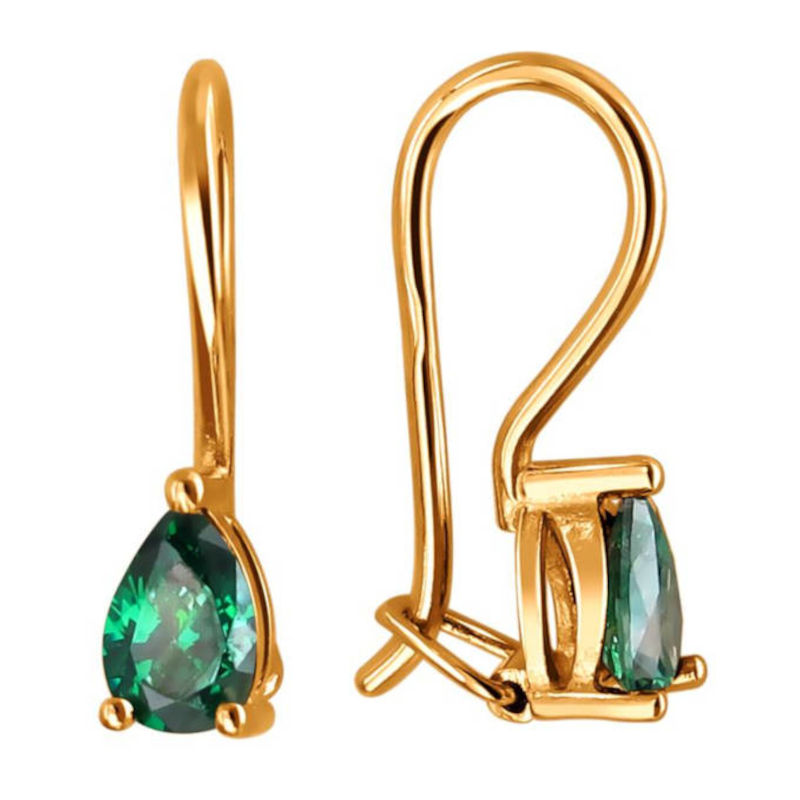 Серьги из красного золота 585 пробы с наноизумрудами 01С214914-2