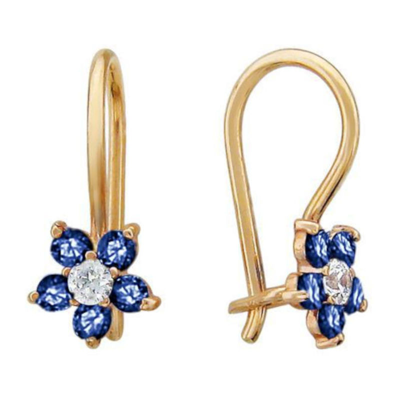 Серьги детские из красного золота 585 пробы с наносапфирами и фианитами 01С216165-2