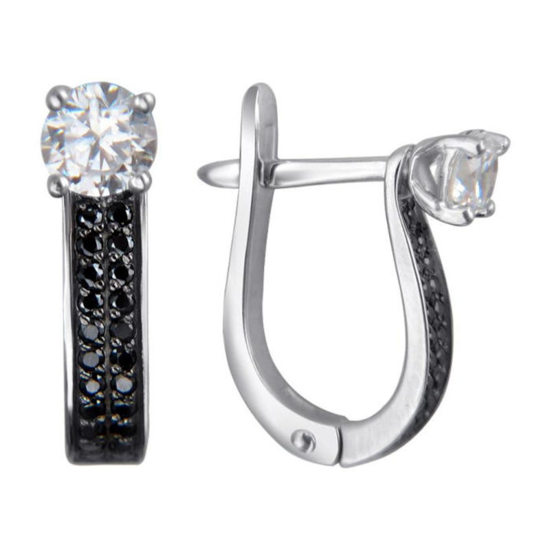 Серьги из белого золота 585 пробы с цветными вставками. Сегодня сочетание золота и фианита уже считается классикой. Роскошный блеск фианита привлекает взгляды, а оригинальный дизайн вносит в образ нотку элегантности. Самые смелые решения дизайнеров воплощаются в современных украшениях. Сочетание черного и белого сегодня является классикой. Украшение прекрасно подойдет для строгого офисного дресс-кода. И в тоже время, экспериментируя с образами, серьги будут уместны на каждый день.