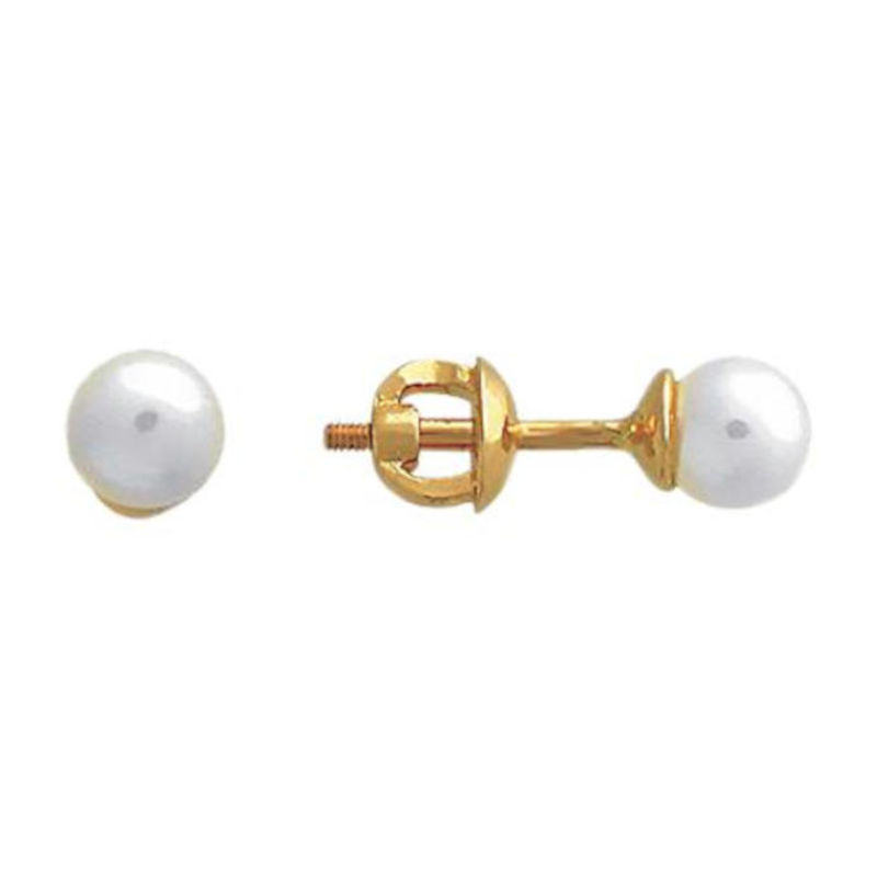Серьги из желтого золота 585 пробы с жемчугом 01С332298-1