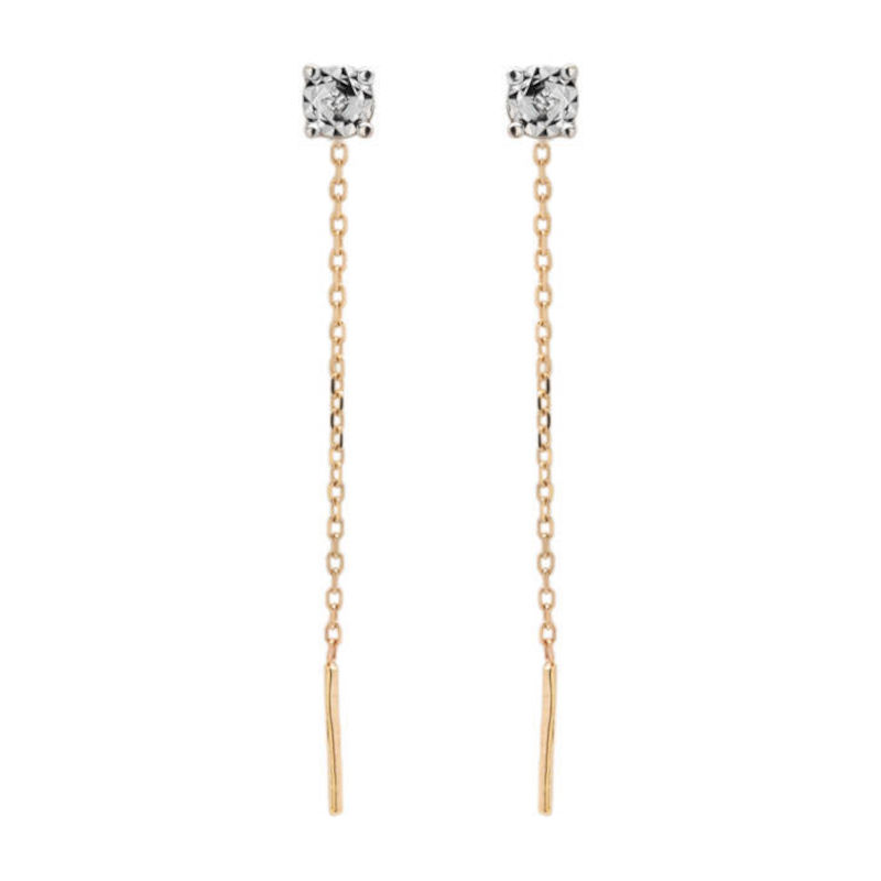 Тоненькие и невесомые серьги из двух цветов золота 585 пробы с бриллиантами. Идеальное сочетание желтого и белого цветов металла. А особая технология позволит сиять бриллианту еще больше. Иллюзорная оправа визуально увеличивает размер прозрачного бриллианта. Серьги привлекут внимание к изяществу Вашей шеи и будут отлично смотреться с любым нарядом. Удобная конструкция без замков. Серьги находятся в ухе и не выпадают за счет баланса сережек. Массы металла с обратной стороны серьги достаточно, чтобы удерживать лицевую композицию. Серьги легко надевать, подходят для любой мочки уха. В украшении много воздуха и движения.