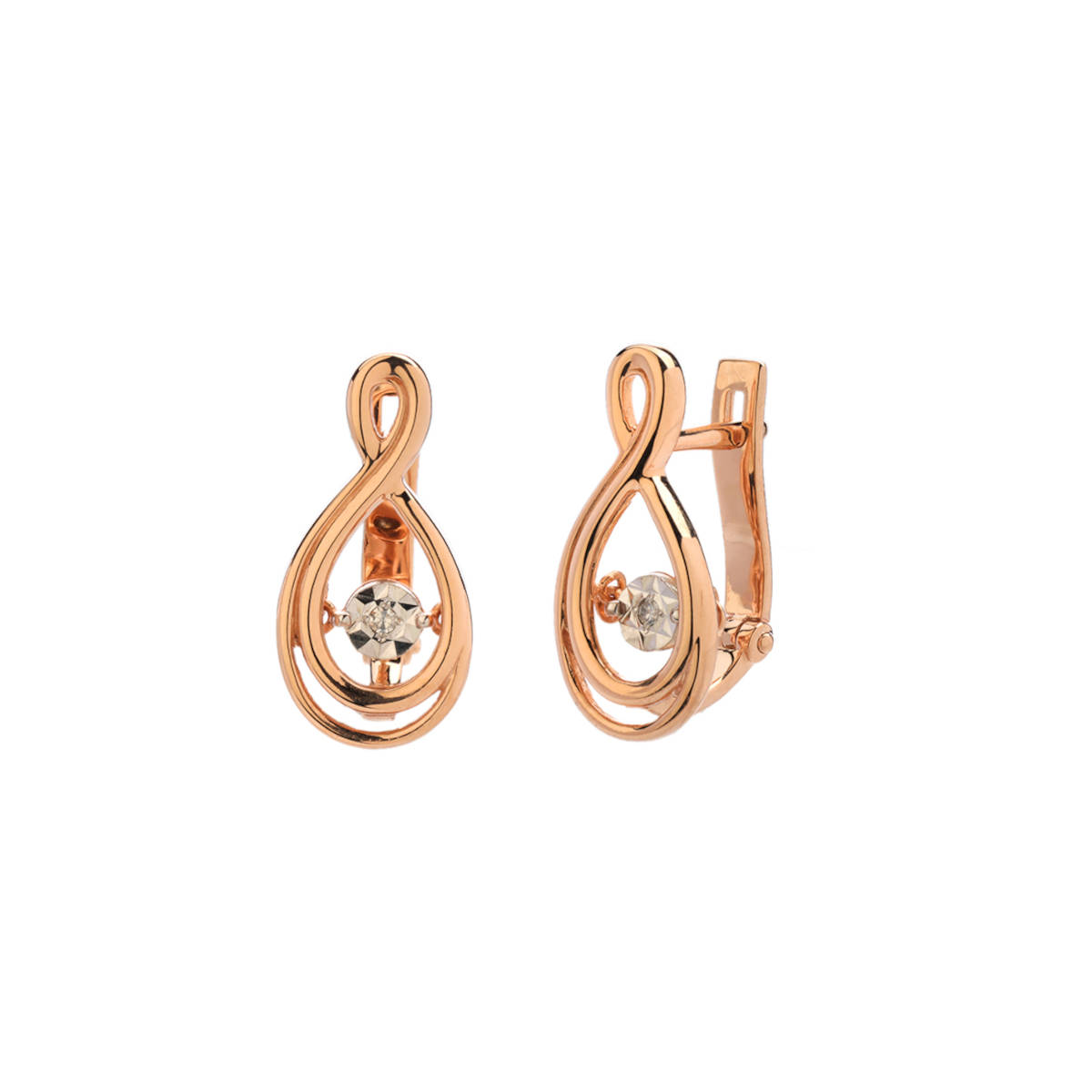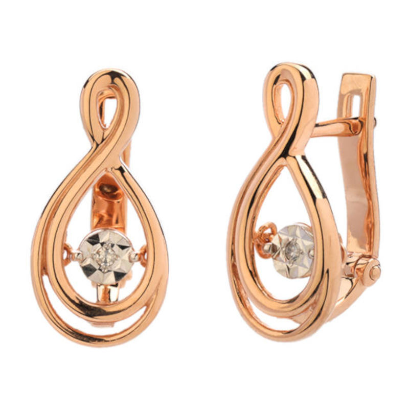 Серьги из красного золота 585 пробы с танцующими бриллиантами из коллекции Impulse. Уникальная закрепка в украшениях Impulse, пожалуй, прорыв во множестве традиционных вариантов закрепки камней. Точно выверенный баланс создан с таким расчетом, чтобы вставка приходила в движение, не переворачиваясь. Качания камня визуально ассоциируются с танцем. Лучи света каждый раз отражаются от разных граней вставки, превращаясь в радужные вспышки света. Это волшебство отражает всю красоту женщины.