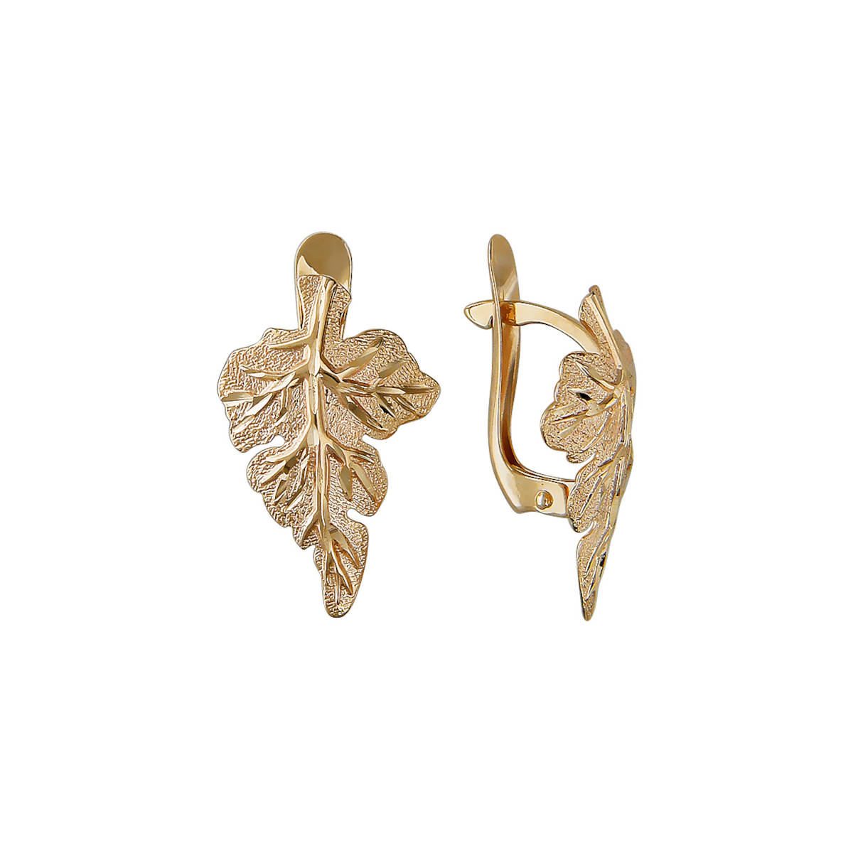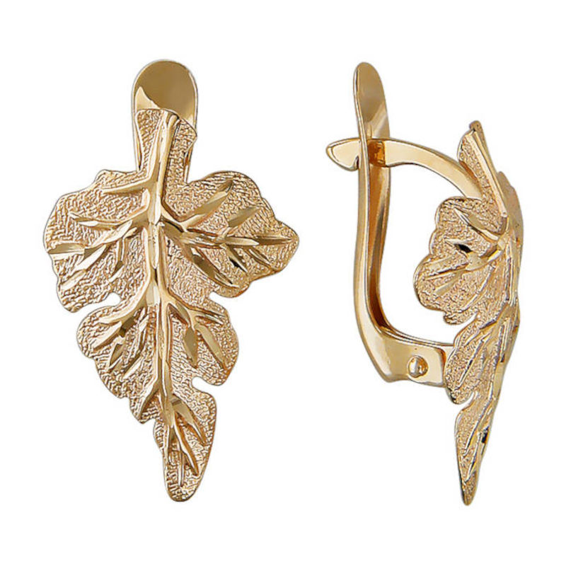 Серьги из красного золота 585 пробы с надежным английским замком привычны и любимы многими женщинами. Это базовое украшение с элегантным дизайном, очень комфортное в повседневной носке. Сочетание фактур матовой поверхности и рисунка из алмазной огранки придется по душе любителям минимализма. Кроме того удачно дополнит гардероб любого стиля. Конструкция замка скроет дырку от прокола.