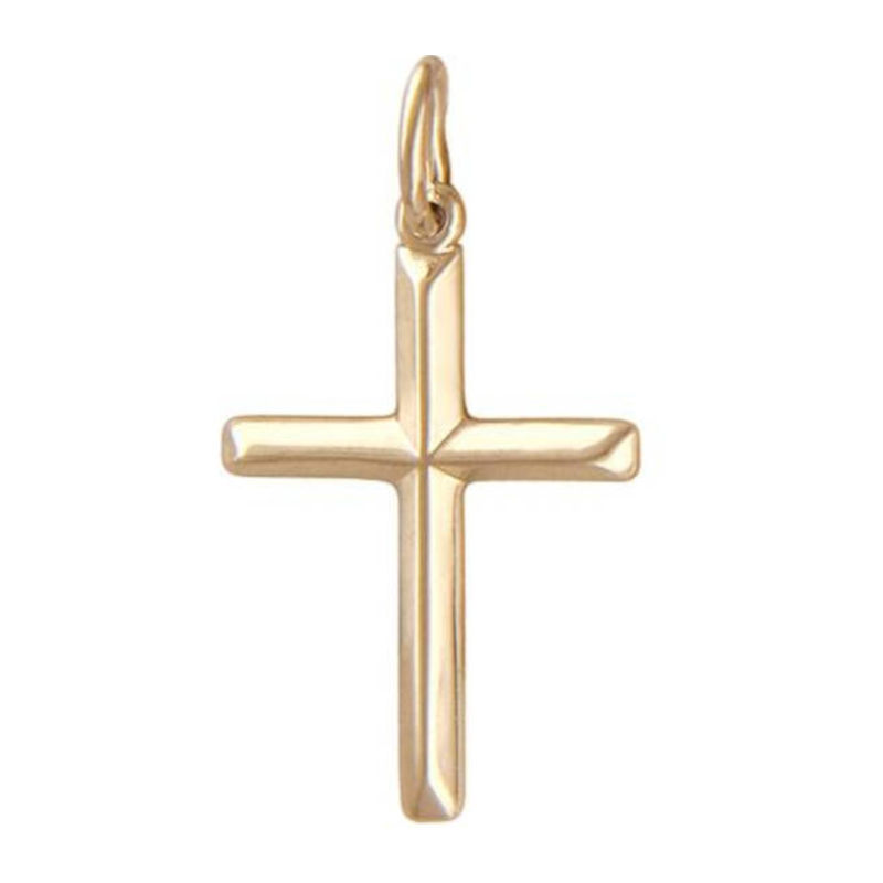 Декоративный крест из красного золота 585 пробы без вставок. Декоративные кресты берут начало от нательных. Отличие их в том, что они не имеют религиозной атрибутики. На них нет распятия и молитв. Они имеют более декоративный дизайн или усыпаны вставками. Их носят на виду, поверх одежды.