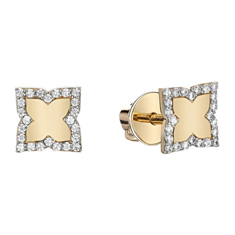 Серьги-пусеты "удача" из желтого золота 585 пробы с фианитами из минималистичной коллекции образов символов. Символ удачи (клевер) – это знак, который помогает его обладателю стать настоящим счастливчиком. Если постоянно носить такой талисман, как символ успеха, можно реализовать различные желания и в любом деле добиваться лучших результатов.