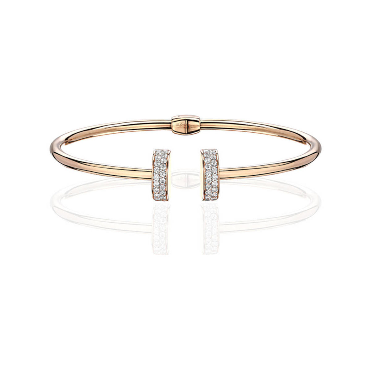 Браслет конго из красного золота 585 пробы с фианитами. Жесткий браслет можно и нужно сочетать с другими браслетами, таким образом собирая модные сеты на запястьях. Допустимо миксовать разные цвета золота. Размер браслета универсальный. Зеркальный блеск металла, гладкая поверхность, любимая форма - это идеальный подарок. Браслеты способны привлечь внимание к изяществу Ваших рук и добавить блеска любому образу. Из всего разнообразия вариантов дизайна можно выбрать именно тот, который впишется в Ваш уникальный стиль.
