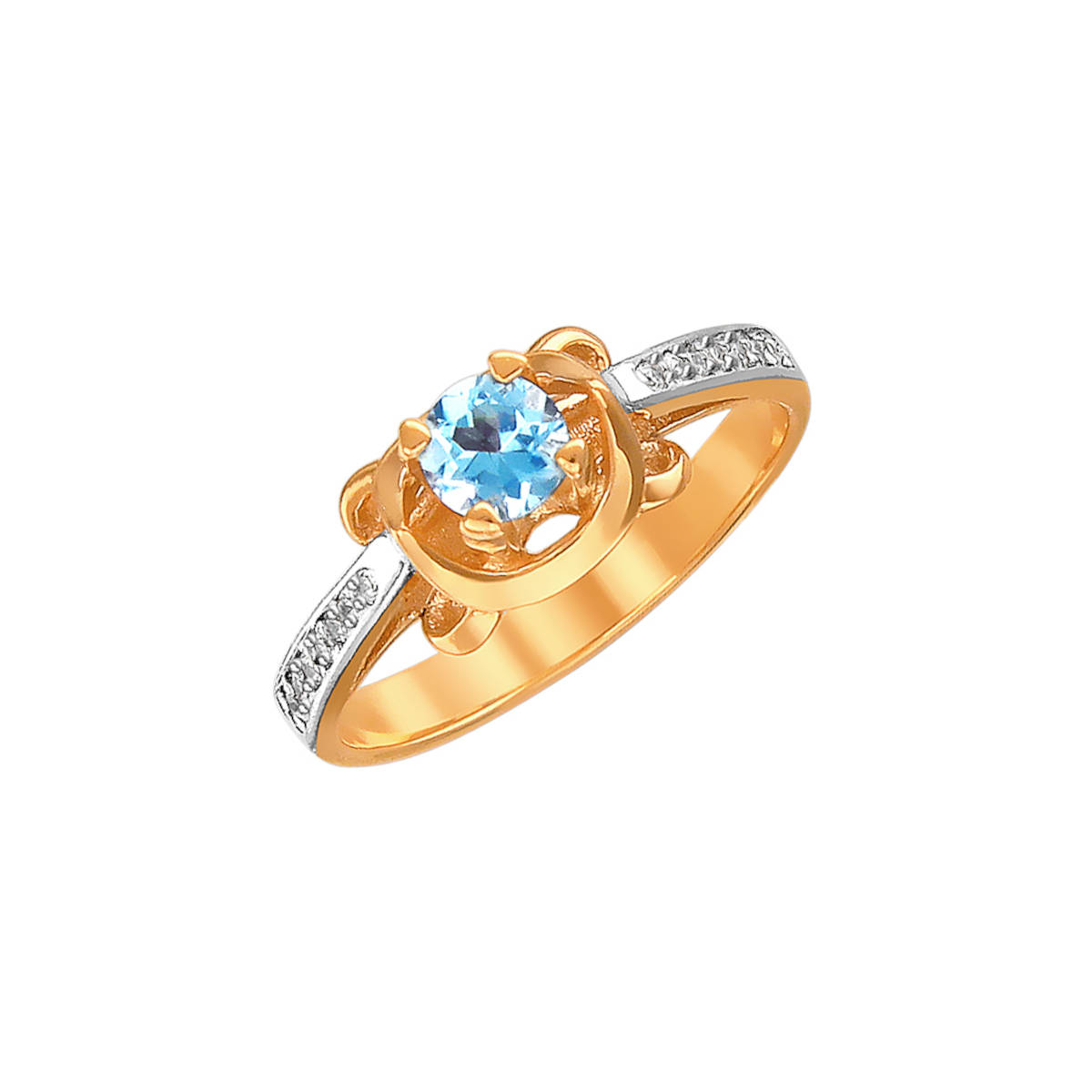Кольцо из красного золота 585 пробы с топазом и фианитами 01К3110971-1