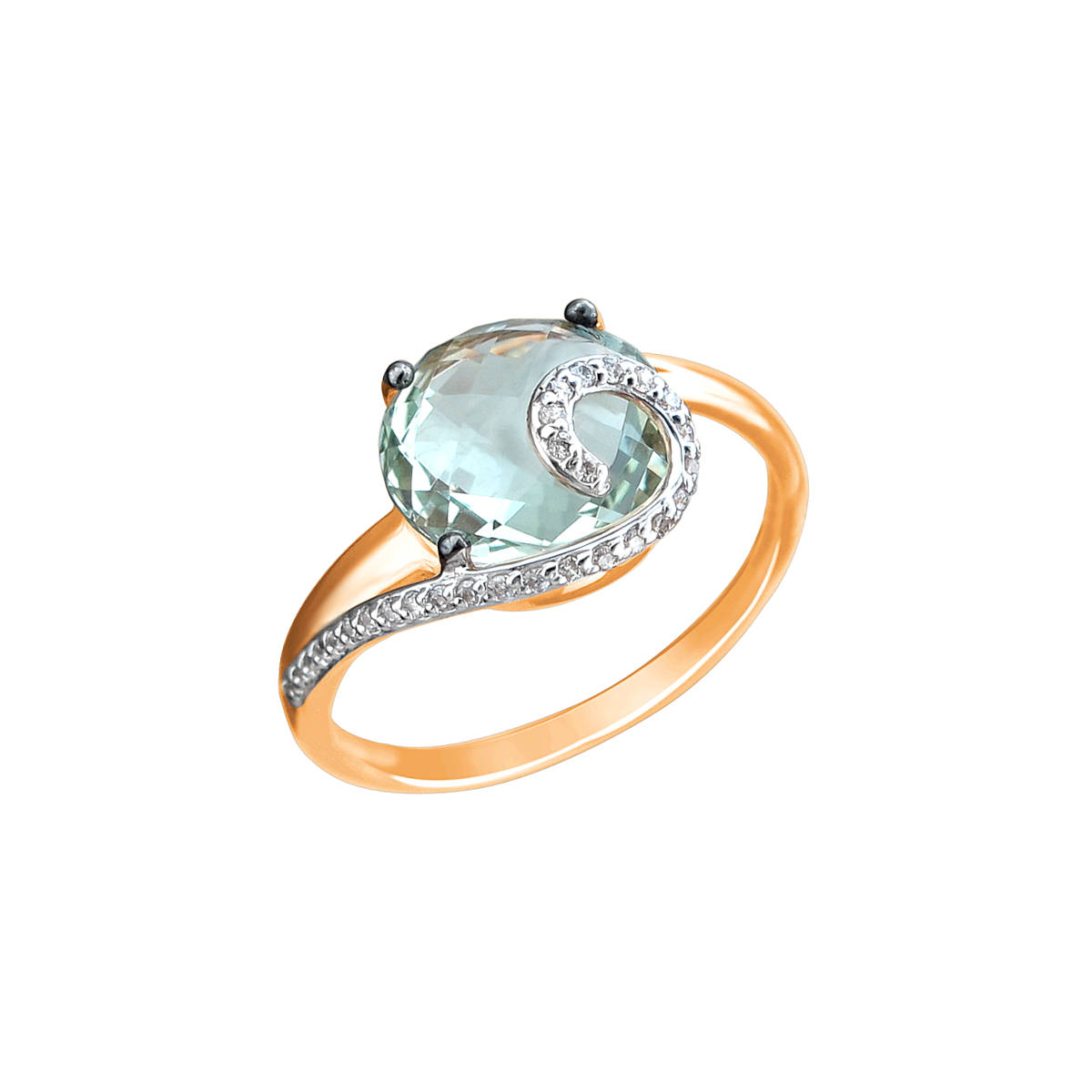 Кольцо из красного золота 585 пробы с празиолитом и фианитами 01К3112164Р-4