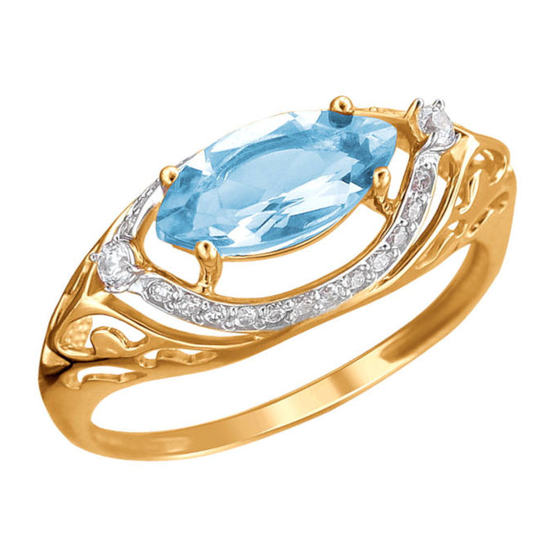 Кольцо из красного золота 585 пробы с топазом и сияющими фианитами. У каждой модницы в шкатулке украшений должны быть натуральные камни. Они несут в себе энергию, статус, цветотерапию. В обрамлении благородного металла такие украшения подарят яркие эмоции. Украшение является инвестицией, так как вместе с драгоценным металлом используются натуральные вставки.