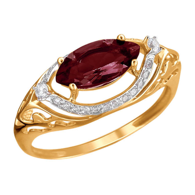 Кольцо из красного золота 585 пробы с гранатом и фианитами 01К3112173Р-6