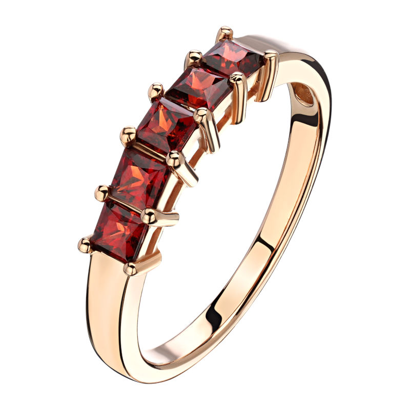 Кольцо из красного золота 585 пробы с гранатами 01К3115069-1