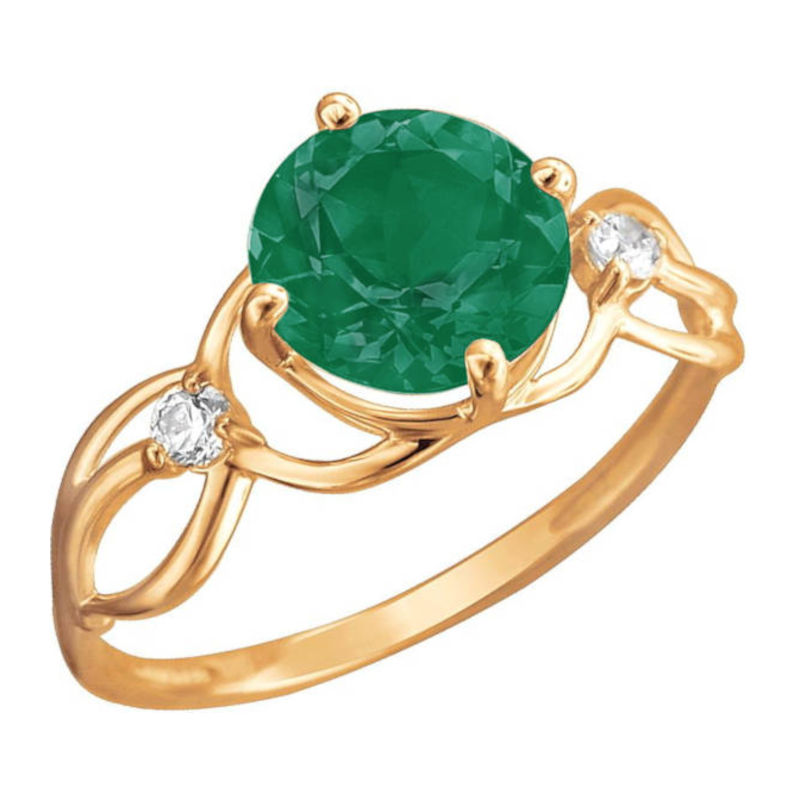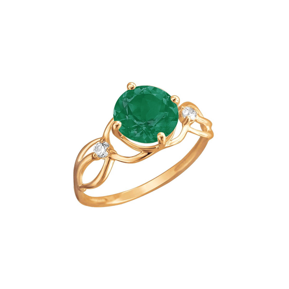 Кольцо из красного золота 585 пробы с зеленым агатом и фианитами 01К4112178-1