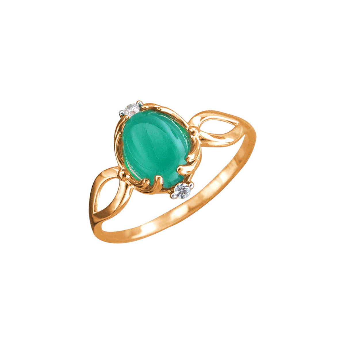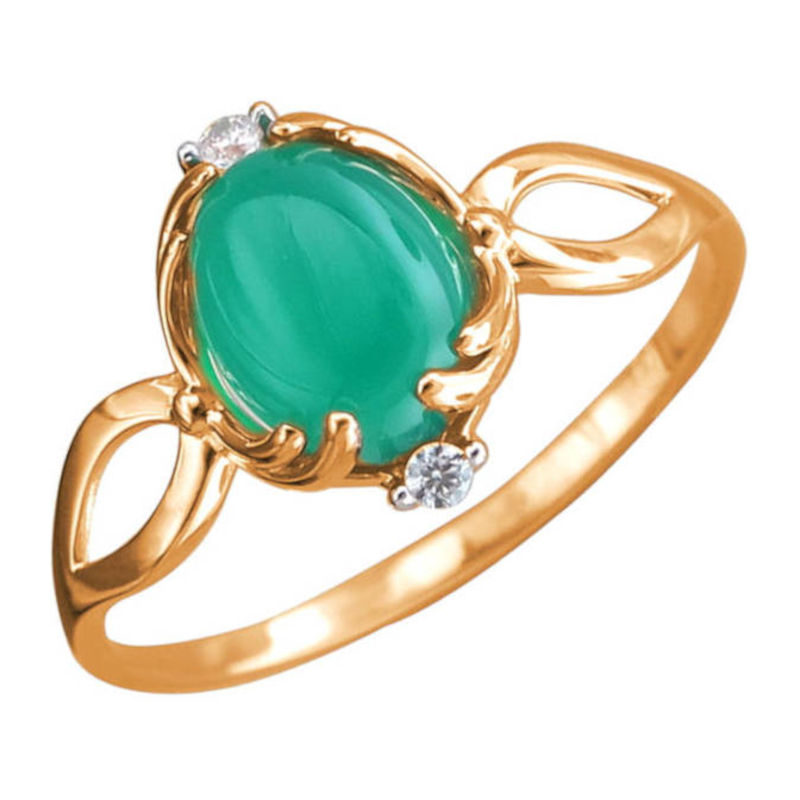 Кольцо из красного золота 585 пробы с зеленым агатом и фианитами 01К4113279-4