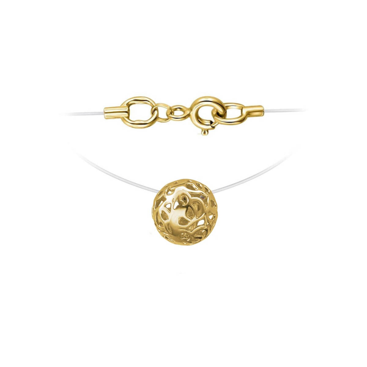 Колье из желтого золота 585 пробы без вставок 01Л031849 на леске-невидимке. Визуальное впечатление отсутствия цепочки придает особую легкость и нежность Вашему образу. Невесомая, будто парящая в воздухе подвеска смотрится оригинально и очень изящно. В украшении много воздуха, свободы. Аксессуар подчеркнет одну из самых притягательных частей - женскую ключицу и плечи.