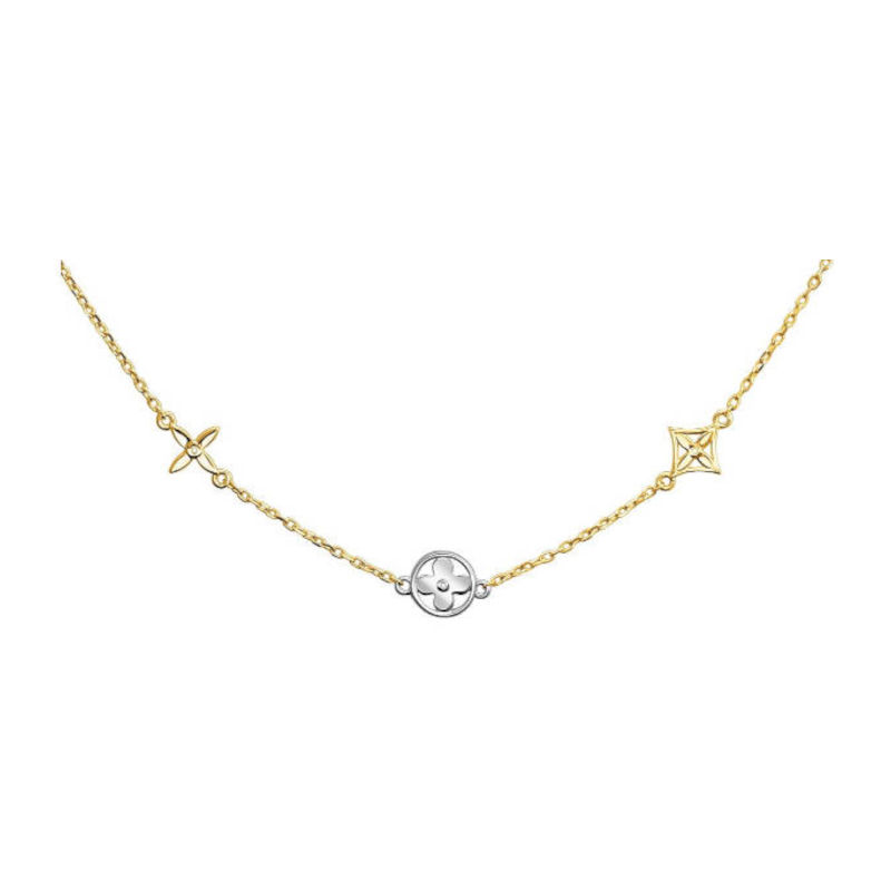 Колье из двух цветов золота 585 пробы без вставок. Идеальное сочетание желтого и белого цветов. Украшение из коллекции Stylish look гармонично и искусно выполнено. Вдохновение пришло от самой природы, ведь декоративные элементы напоминают четырехлистный клевер. По легенде, нашедшему такое растение, оно приносит удачу. Найдите свое украшение в коллекции Stylish look.