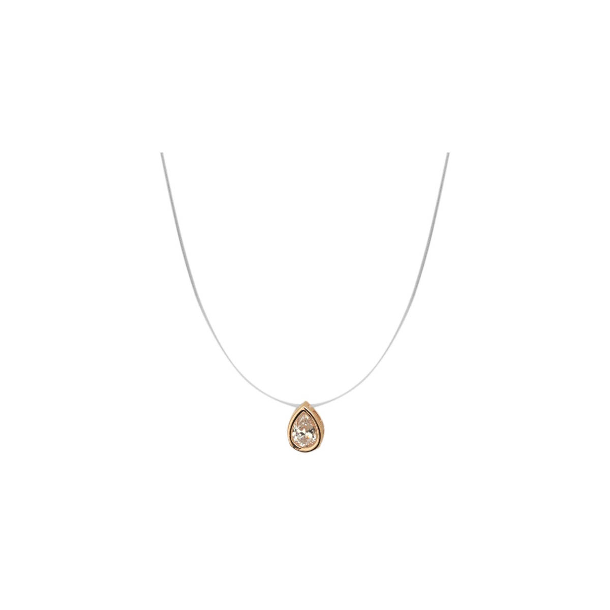 Необычное украшение – колье на леске-невидимке из красного золота 585 пробы с фианитом. Визуальное впечатление отсутствия цепочки придает особую легкость и нежность Вашему образу. Невесомая, будто парящая в воздухе подвеска смотрится оригинально и очень изящно. В украшении много воздуха, свободы. Аксессуар подчеркнет одну из самых притягательных частей - женскую ключицу и плечи.