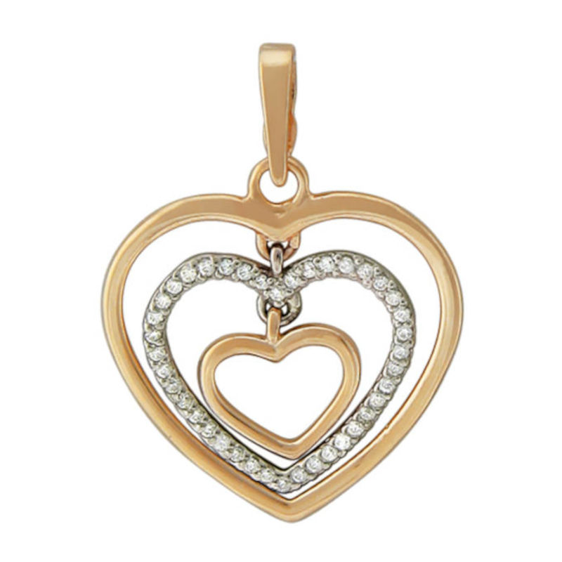 Подвеска "Сердце" из двух цветов золота 585 пробы с фианитами 01П160717