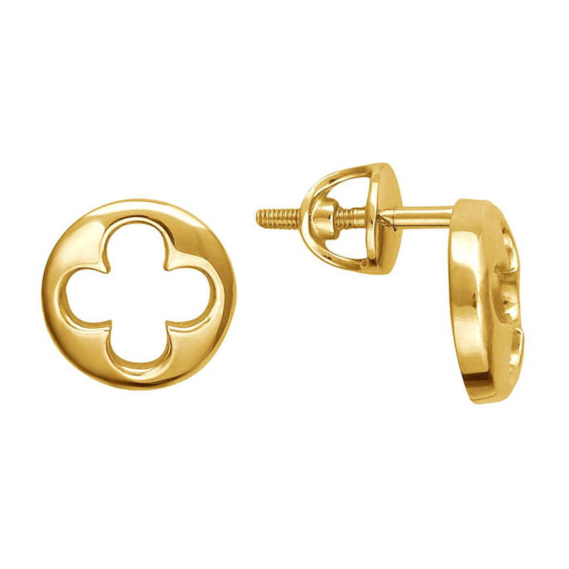 Серьги пусеты из желтого золота 585 пробы без вставок – современная классика. Лаконичная форма и небольшой размер делают их идеальным украшением на каждый день. Замок пусет позволяет более плотно зафиксировать серьгу на мочке. Вдохновение пришло от самой природы, ведь декоративные элементы напоминают четырехлистный клевер. По легенде, нашедшему такое растение, оно приносит удачу. Найдите свое украшение в коллекции Stylish look