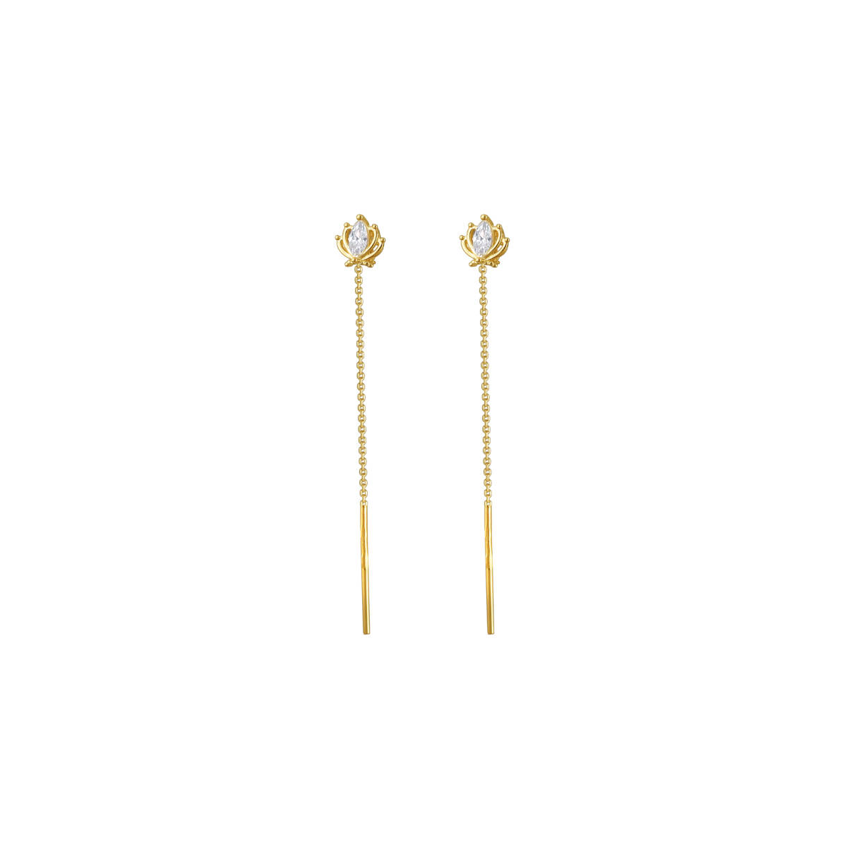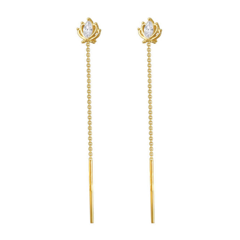 Невесомые серьги цепочки из красного золота 585 пробы с фианитами привлекут внимание к изяществу Вашей шеи и будут отлично смотреться с любым нарядом. Не стоит волноваться за отсутствие замка. Серьги находятся в ухе и не выпадают за счет баланса сережек. В украшении много воздуха и движения.