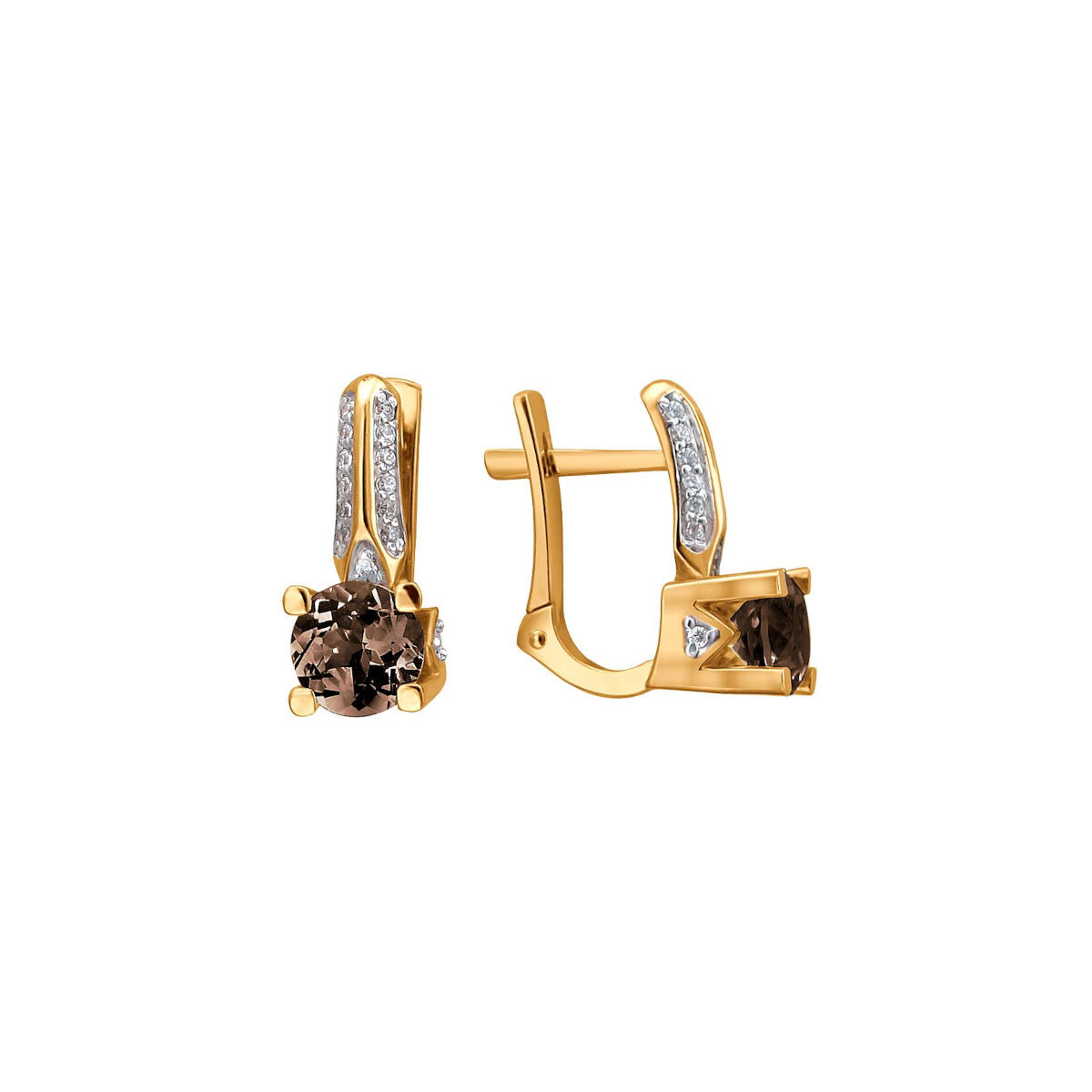 Серьги из красного золота 585 пробы с раух-топазами и фианитами 01С3112169Р-3