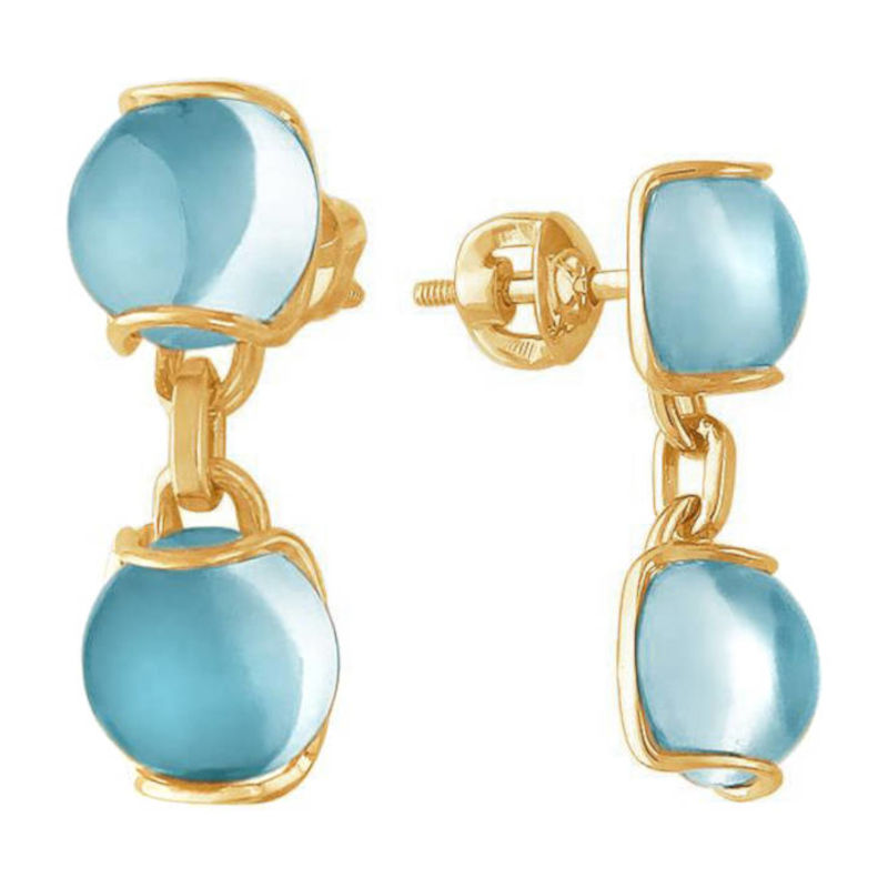 Серьги из желтого золота 585 пробы с топазами. Топазы огранки кабошон напоминают леденцы. У каждой модницы в шкатулке с украшениями должны быть натуральные камни. Они несут в себе энергию, статус, цветотерапию. В обрамлении благородного металла такие украшения подарят эркие эмоции. Украшение является инвистицией, так как вместе с драгоценным металлом используются натуральные вставки.