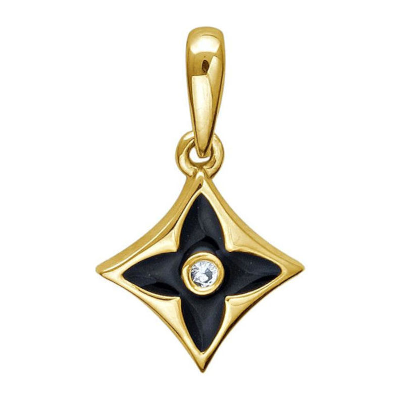 Подвеска из желтого золота 585 пробы с фианитом и эмалью 01П1314059Э