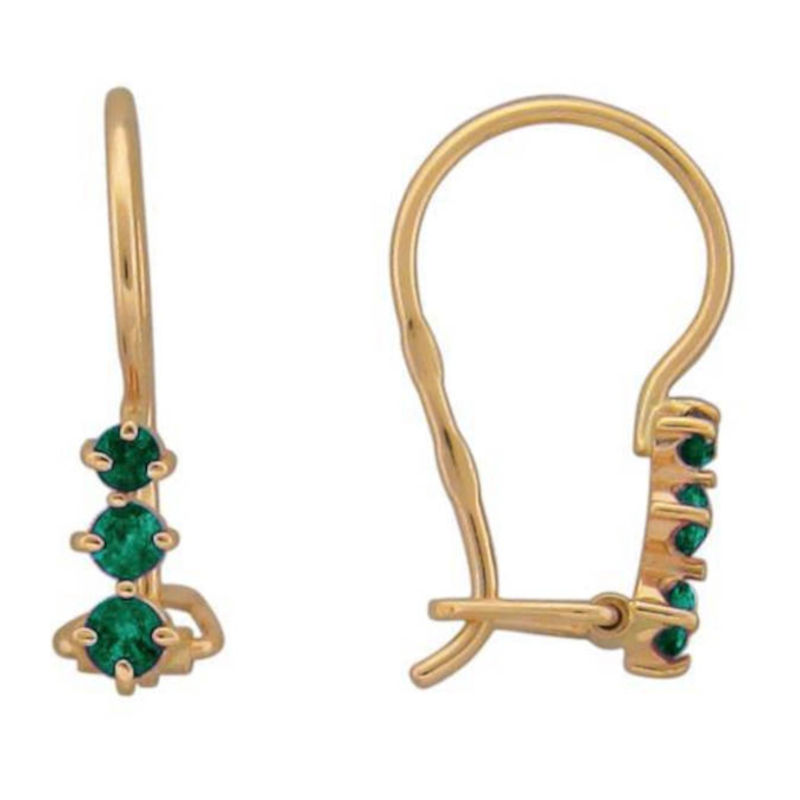 Детские серьги из красного золота 585 пробы с синт.шпинелью и наноизумрудами 01С214807-1
