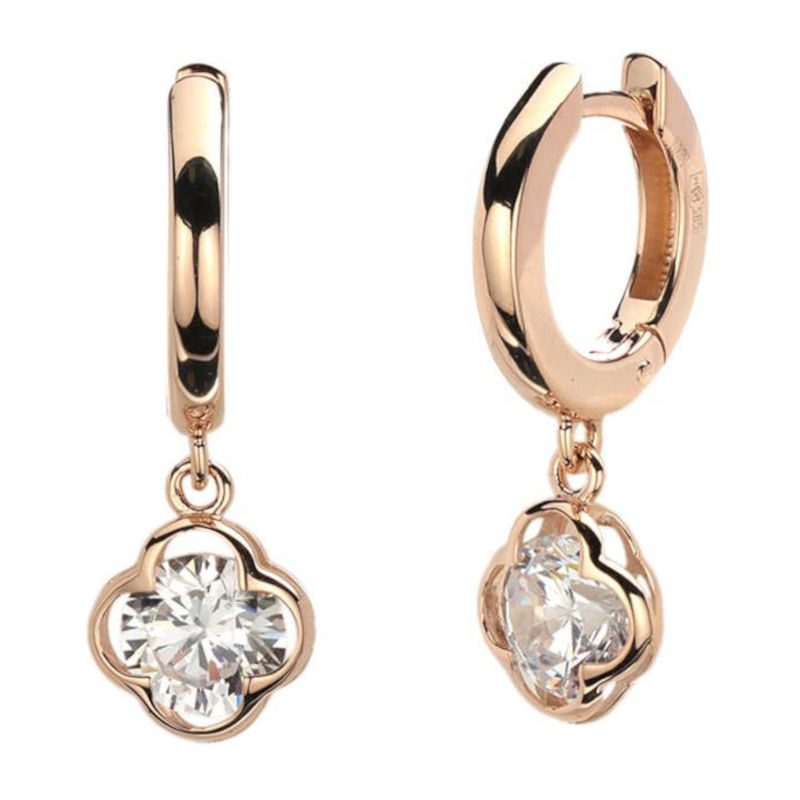 Серьги конго из красного золота 585 пробы с с фианитами. Украшение из коллекции Stylish look гармонично и искусно выполнено. Вдохновение пришло от самой природы, ведь декоративные элементы напоминают четырехлистный клевер. По легенде, нашедшему такое растение, оно приносит удачу. Найдите свое украшение в коллекции Stylish look.