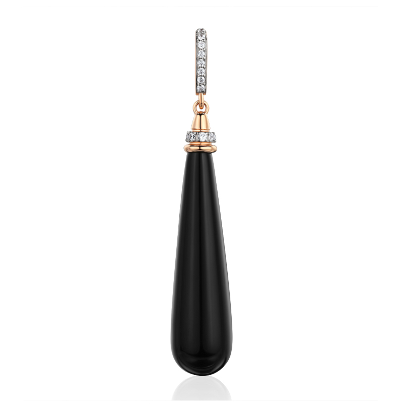 Элегантная подвеска из красного золота 585 пробы с агатом и фианитами 01П4115584Р-1 станет изысканным акцентом в вашем образе. Центральный элемент — вытянутый черный агат, который символизирует силу и защиту. Его насыщенный цвет и гладкая поверхность придают украшению особую выразительность и загадочность. Сверкающие фианиты добавляют искристости и яркости образу.