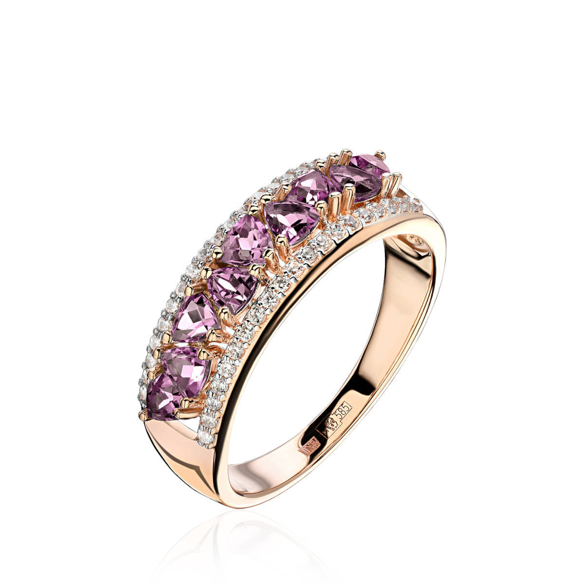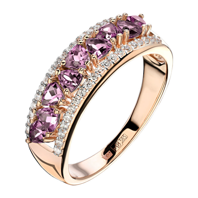 Кольцо из красного золота 585 пробы с аметистами и фианитами 01К3115067-4