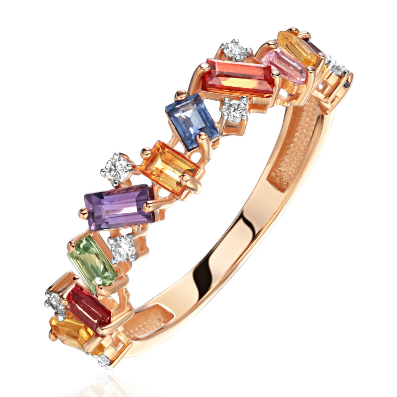 Кольцо из красного золота 585 пробы с сапфирами и бриллиантами 01К6115499-1