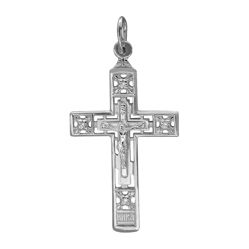 Крест из белого золота 585 пробы с бриллиантами 01Р620871-17